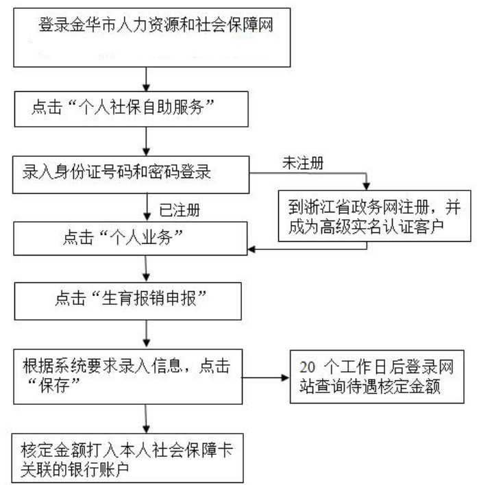 1、用人单位已按规定为其在金华市社保局办理参保登记手续并连续缴纳生育保险费12个月;