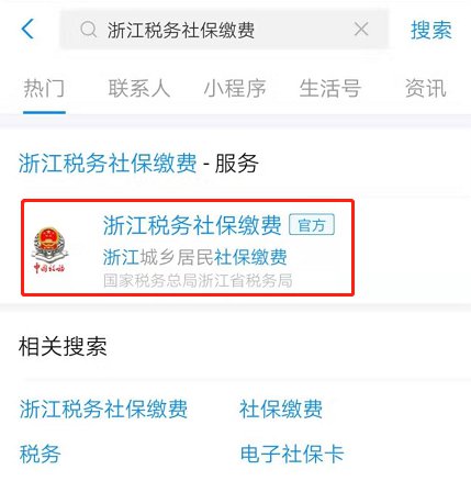 方式一:打开支付宝,在首页搜索“浙江税务社保缴费”。
