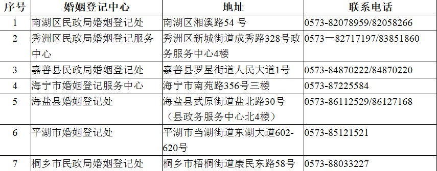 嘉兴婚姻登记处地址: