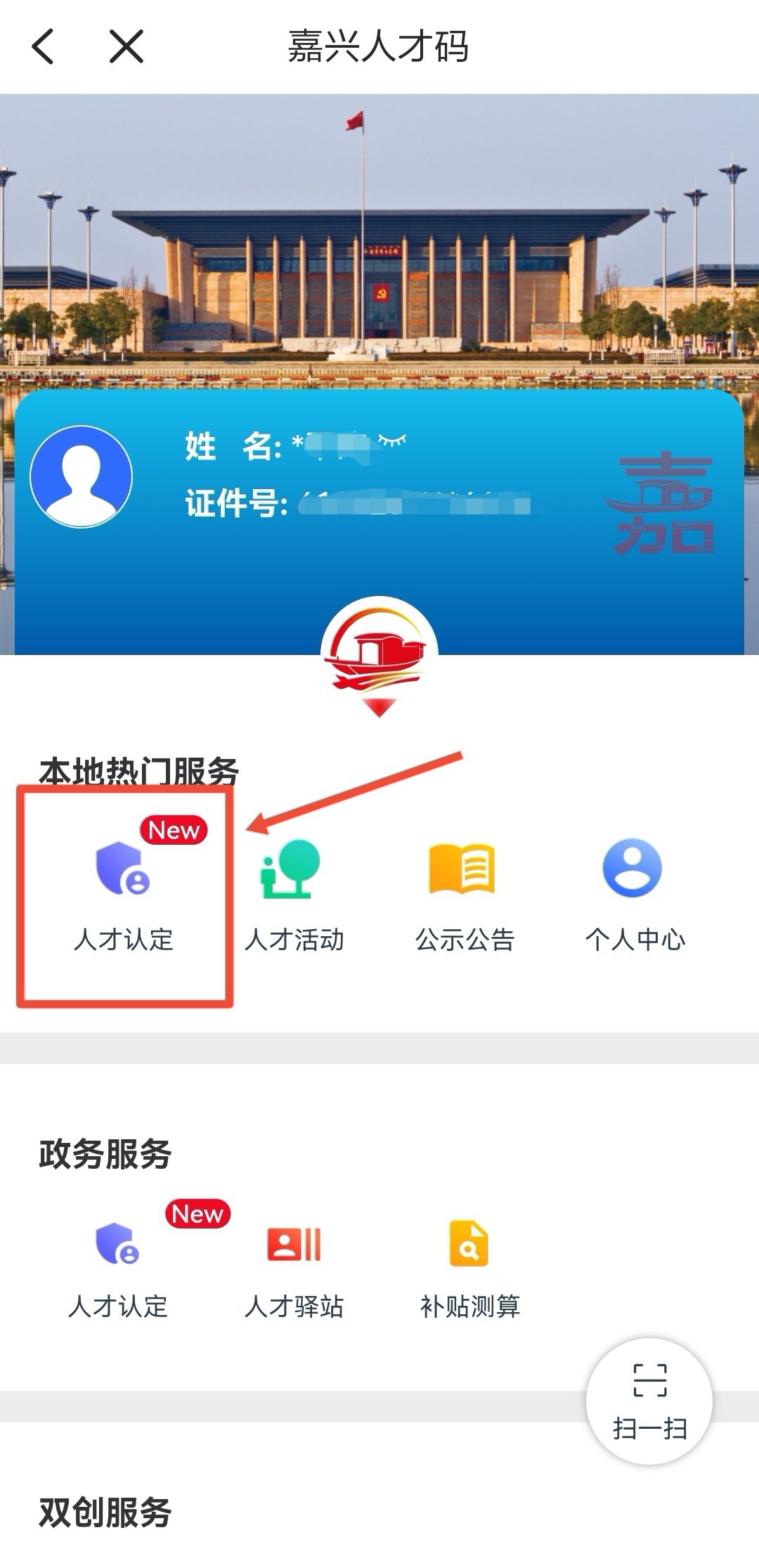 1.登录浙里办APP,搜索进入“嘉兴人才码”