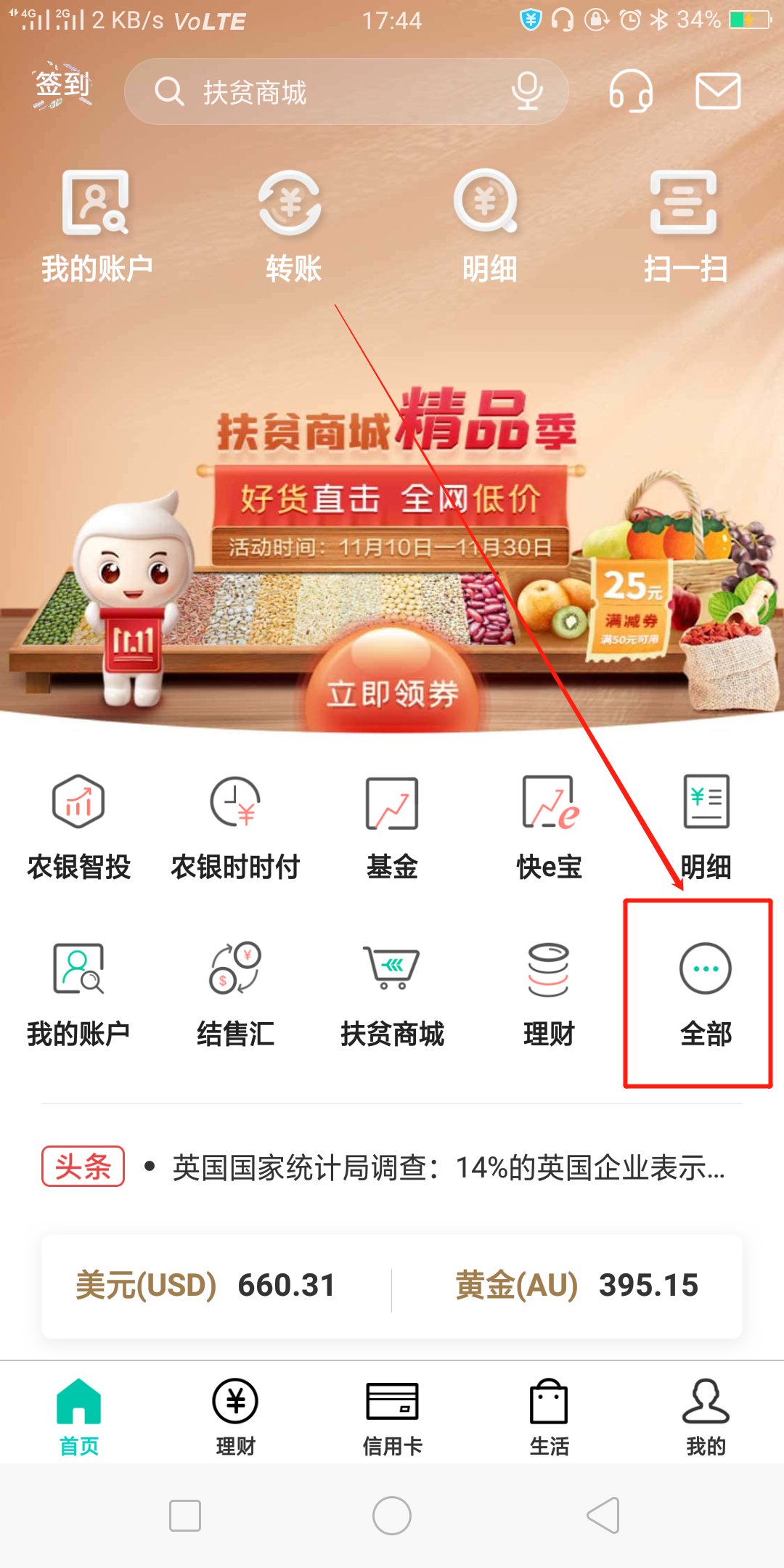 2.进入APP后点击页面中的“全部”;接着将页面下滑,在“助手”栏下点击选择“纪念币”进行预约;