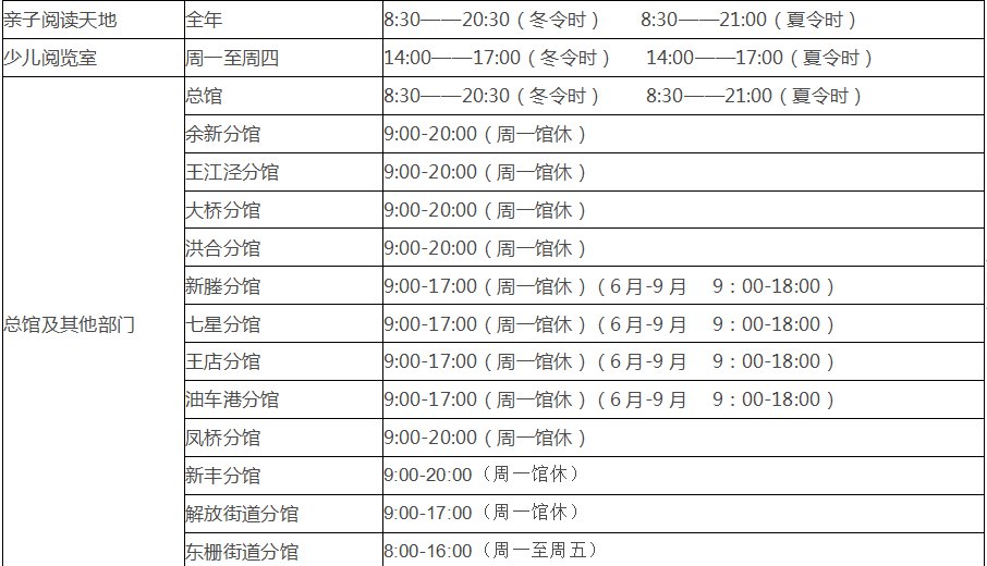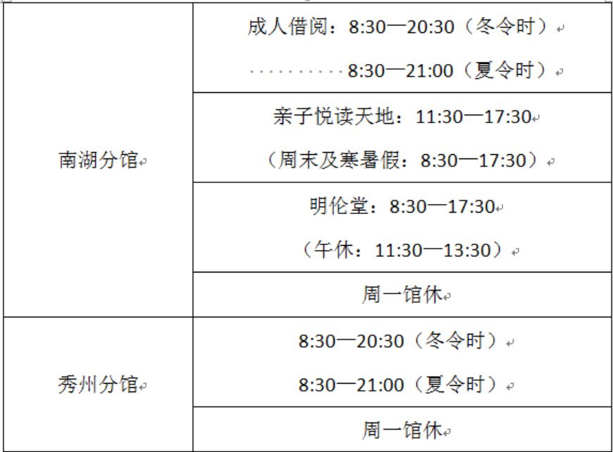 嘉兴图书馆各馆开放时间