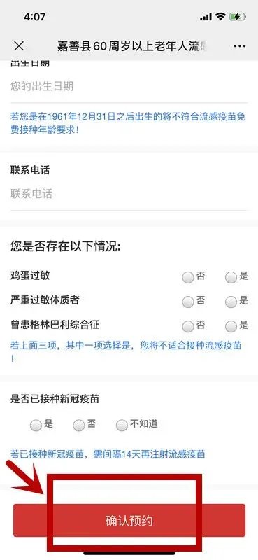 2.个人信息填写完成后,点击【确认预约】
