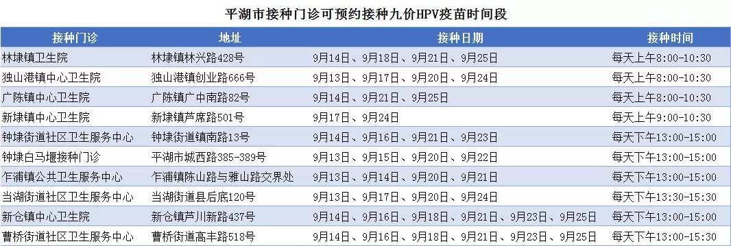 2021嘉兴平湖九价HPV疫苗接种门诊一览(嘉兴hpv疫苗九价预约2021年)