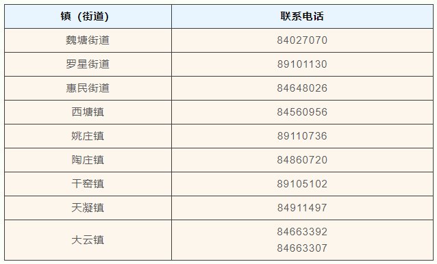 各镇(街道)健康体检预约咨询电话