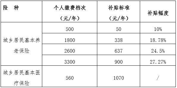 注:城乡居民基本养老保险补贴计入缴费补贴账户。其中因中断缴费而补缴的,补缴年度不享受补贴。