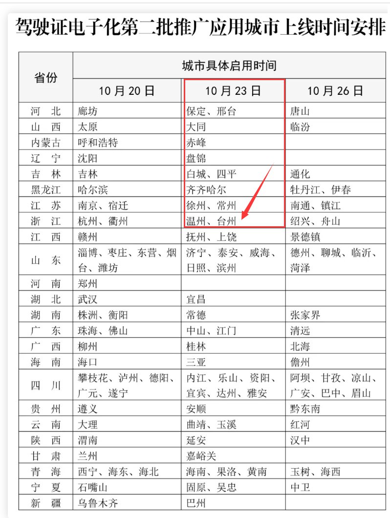 为保证电子驾驶证及时、顺利发放,第二批110个推广应用城市将自10月20日至26日错峰上线电子驾驶证申领功能,驾驶人可以对照本地启用时间安排,通过全国统一的“交管12123”APP申领电子驾驶证。推广应用城市发放的电子驾驶证在全国范围内有效,可以在办理交管业务、接受执法检查时出示使用,并可以拓展客货运输、汽车租赁、保险购置等社会应用场景。