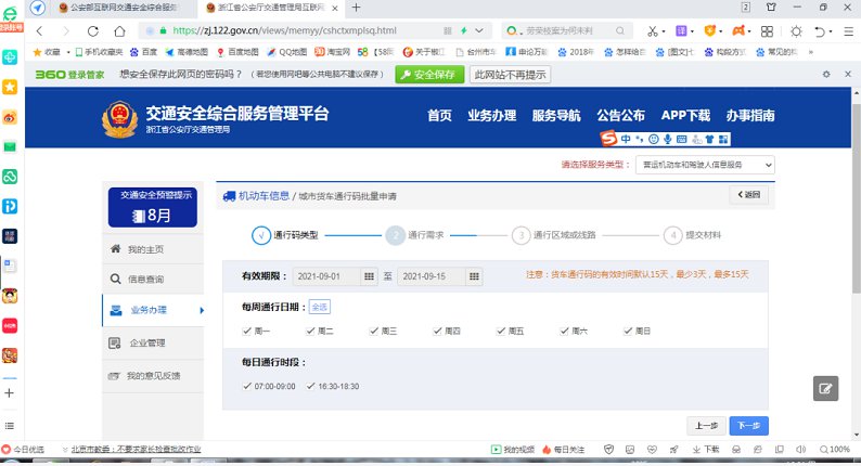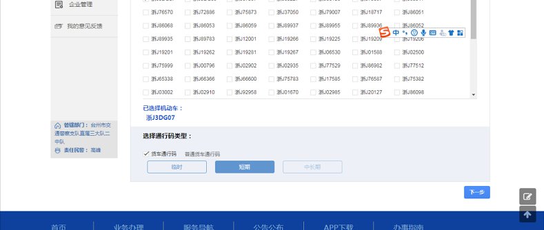 台州轻型货车通行证单位申请网上操作指南