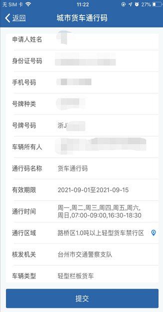 台州个人如何申请轻型货车通行证(交管12123)