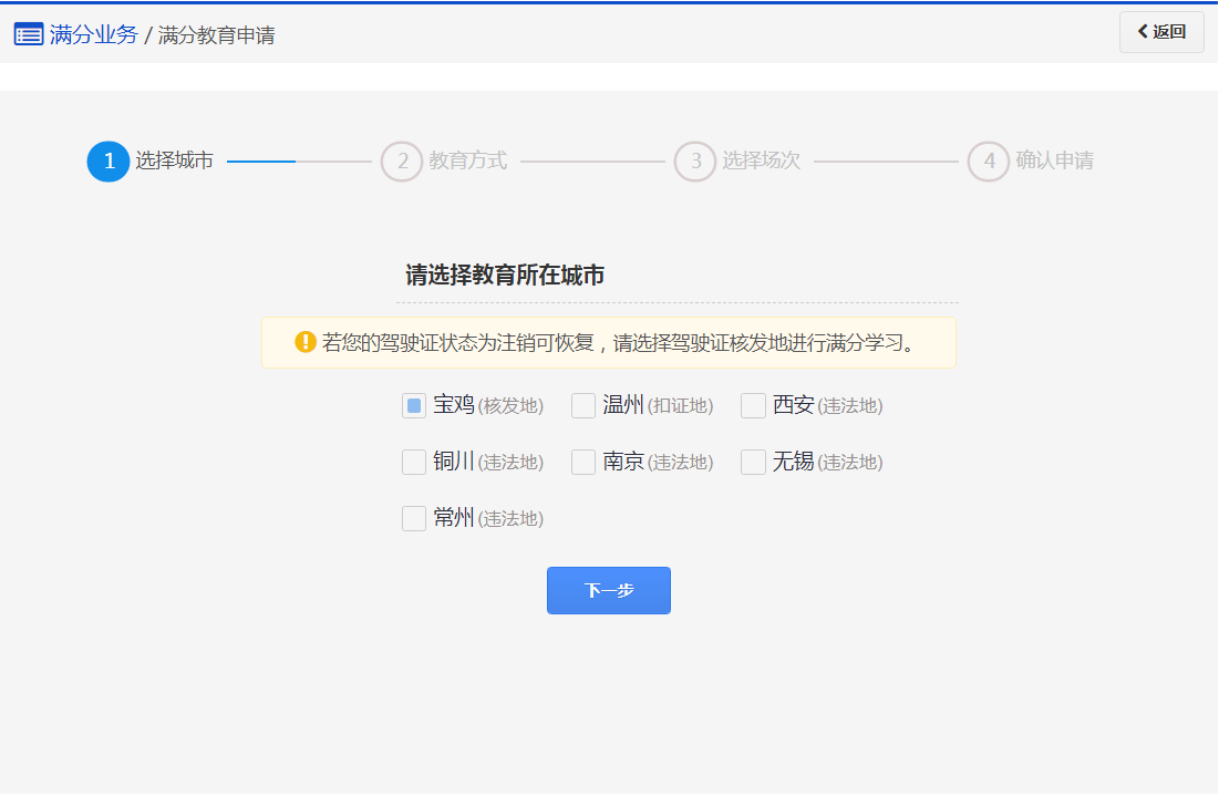 在该步骤,用户已申请成功,请在规定的时间内参加相应的教育场次完成满分教育。