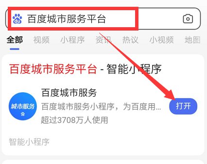 打开百度APP,搜索『百度城市服务』小程序,点击进入小程序页面