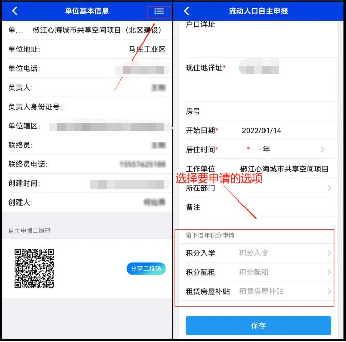 积分申请人需提供2022年1月31至2月7日(农历十二月二十九至正月初七)期间,“通信大数据行程卡”截图或企业通过自主申报系统申报留椒过年积分申请,证明未出台州市。即可给予流动人口积分5分奖励。
