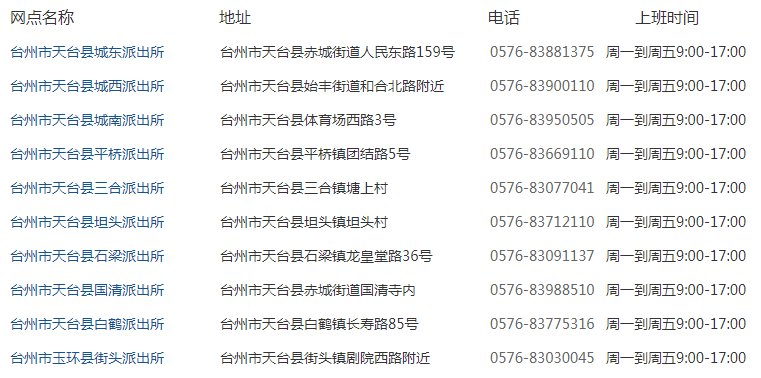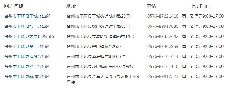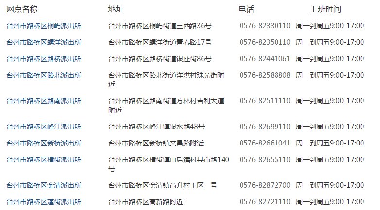 台州各区派出所地址一览