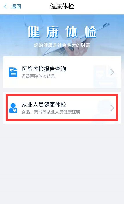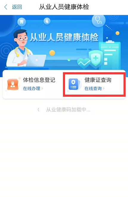 首页搜索“健康体检”——进入应用后点击“从业人员健康体检”——“健康证查询”即可