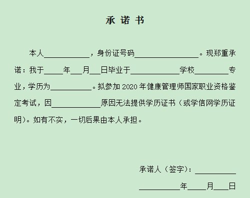 台州健康管理师考试承诺书下载