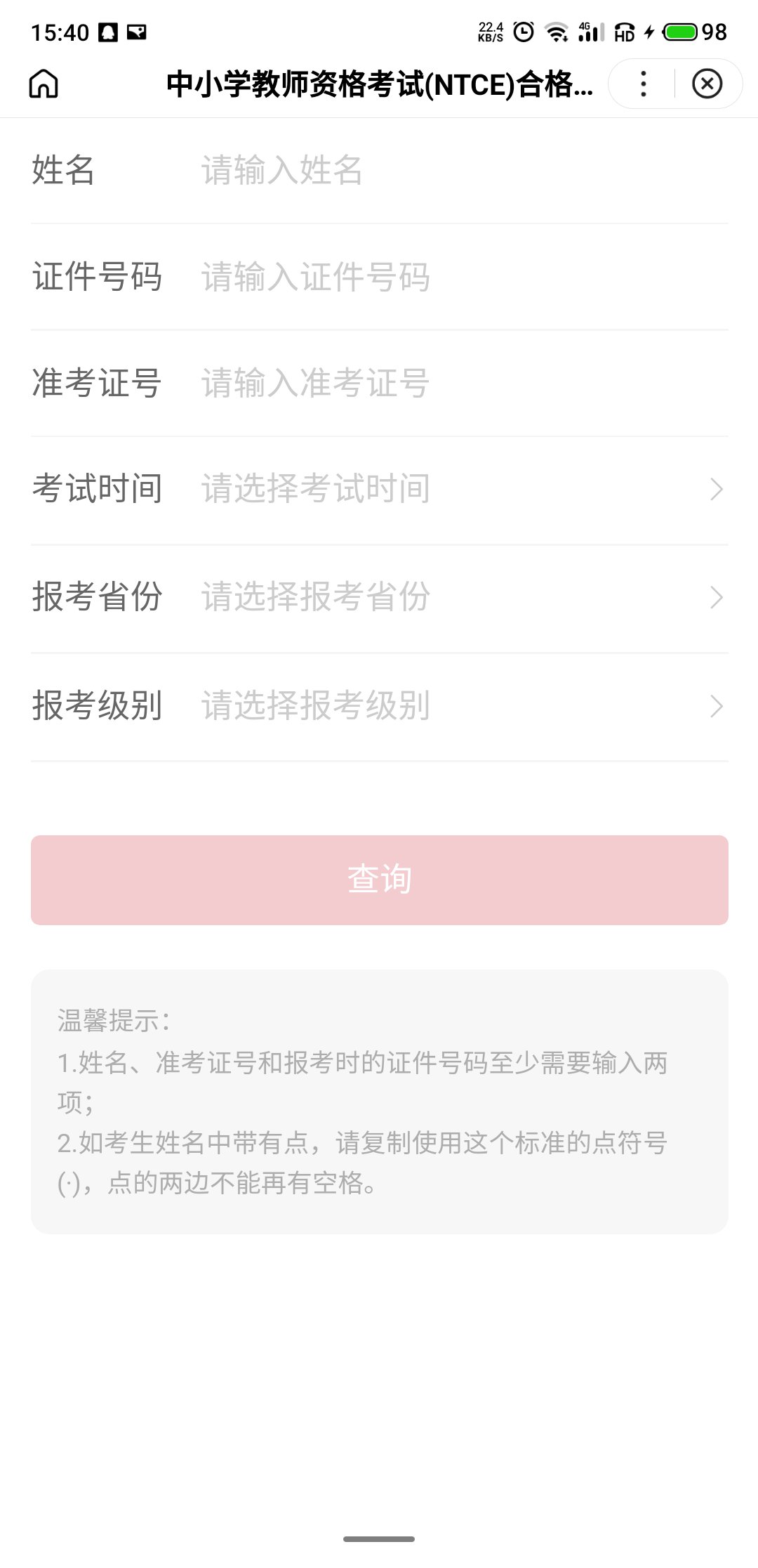 第三步:输入姓名、证件号码、准考证号等相关信息,即可查询到中小学教师证明