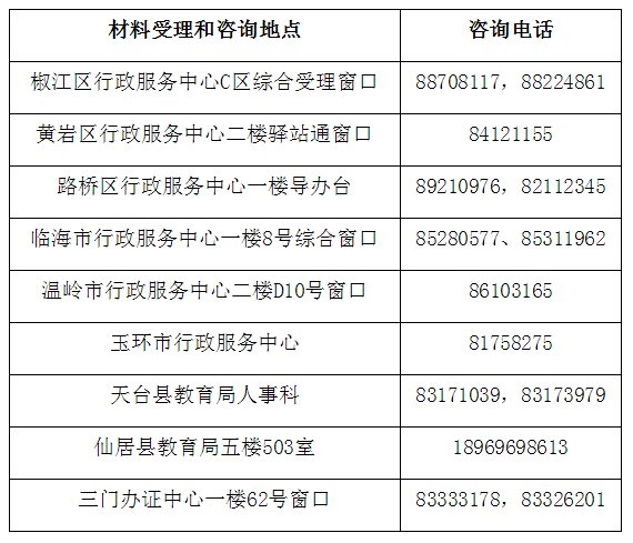 各县(市、区)材料受理、咨询地点和咨询电话如下: