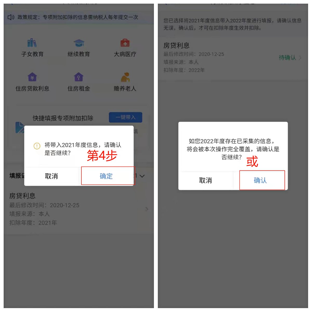 情形一:2022年的专项附加扣除信息若无变动,只需在2021年基础上确认即可。