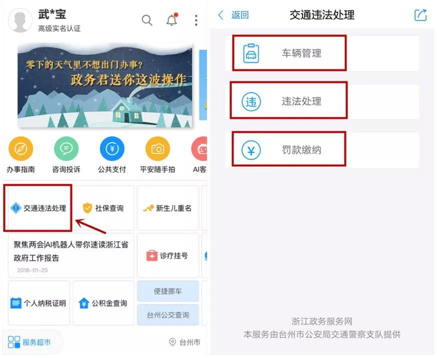 1、浙里办APP处理:点击违法处理,进行在线违法处理