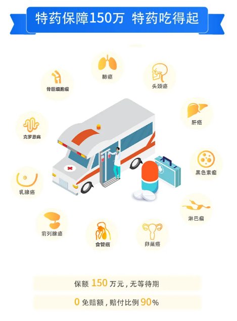 (二)20种恶性肿瘤特定药品费,上限150万。