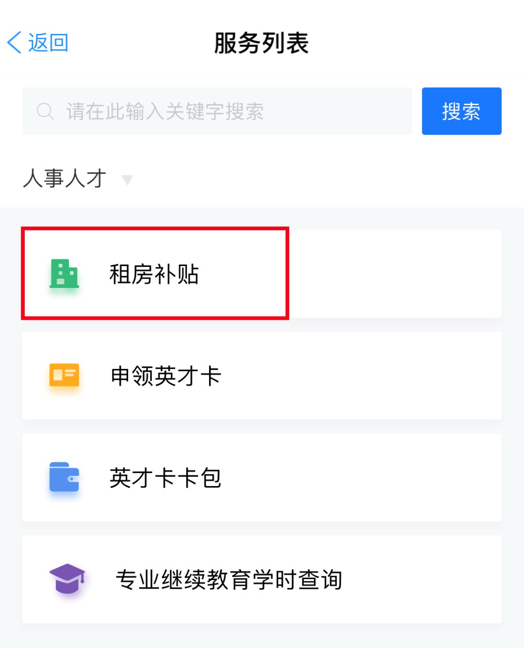 1、注册并登陆浙里办个人账户,进入浙里办首页,左上角设置行政区划为“浙江省-台州市”并搜索“台州掌上人社”,进入应用;找到“服务-人事人才-租房补贴”服务,点击进入服务。