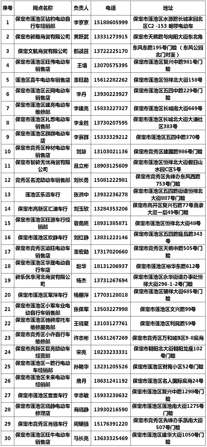 保定满城区第二批电动自行车登记上牌网点名单