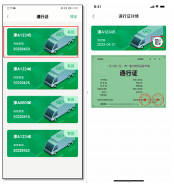点击相应车牌号码对应的通行证图片,进入通行证详情页面。