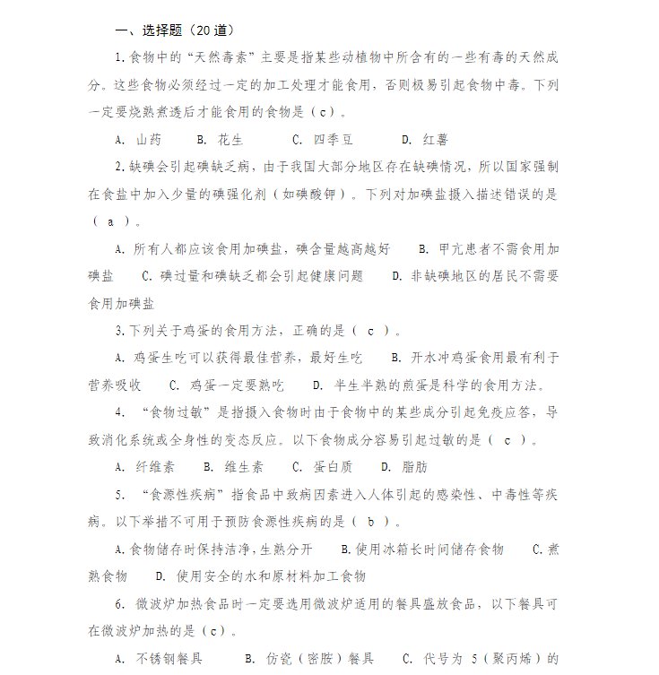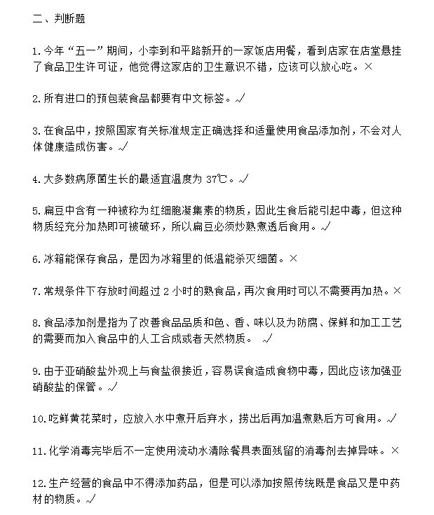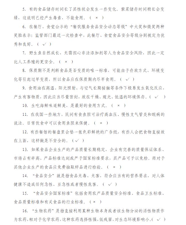 河北食品安全网络知识竞赛题库及答案(选择题+判断题)
