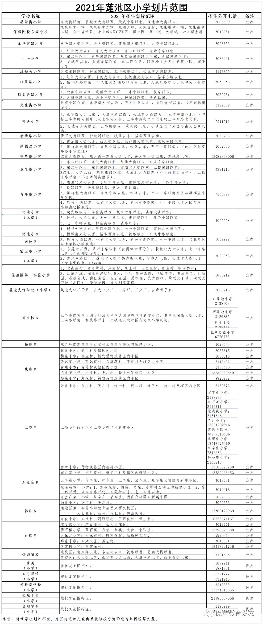 2021保定莲池区小学划片范围(保定莲池区学校规划)