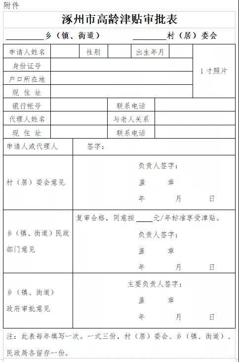 涿州市民政局关于开展2021年高龄津贴发放工作通知