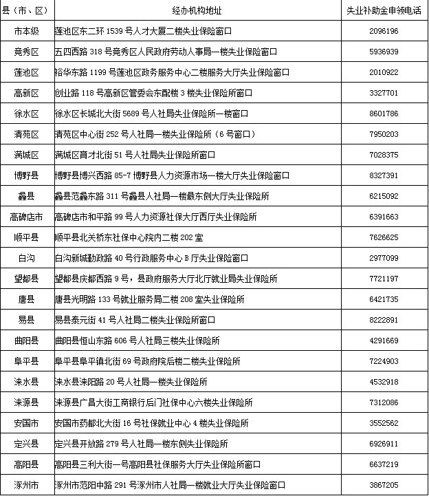 2020保定失业补助金申领机构及联系电话