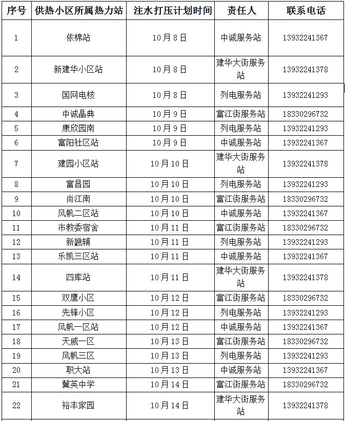 后续,我们将持续在公众号中发布最新注水试压时间计划,请各位热用户家中及物业留人,密切配合供热公司工作。