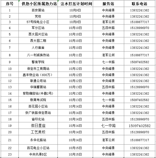 大唐保定供热2021年10月打水试压计划(大唐保定热力)