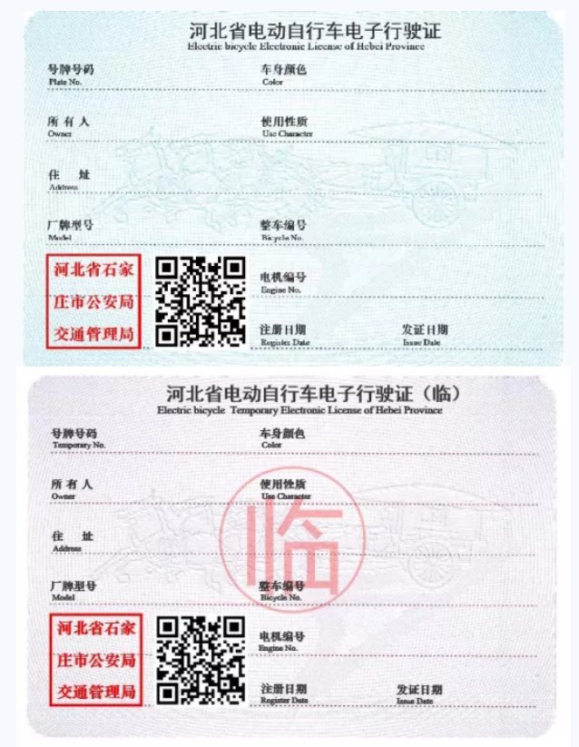 河北电动自行车电子行驶证样式 河北电动自行车电子行驶证样式是什么