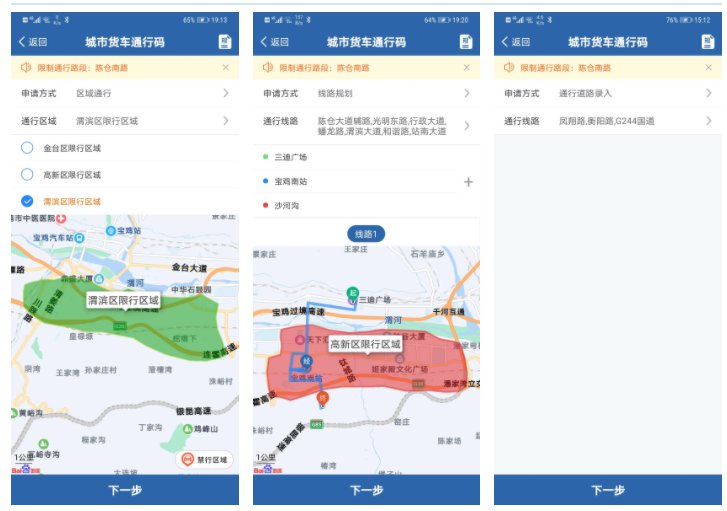 第三步选择通行线路(区域)。用户可通过三种方式选择通行线路(区域)。