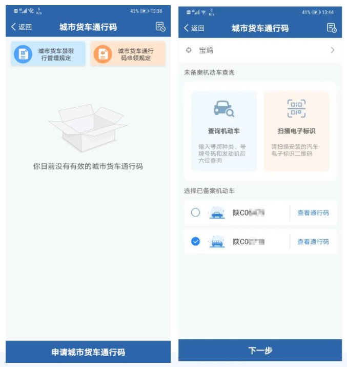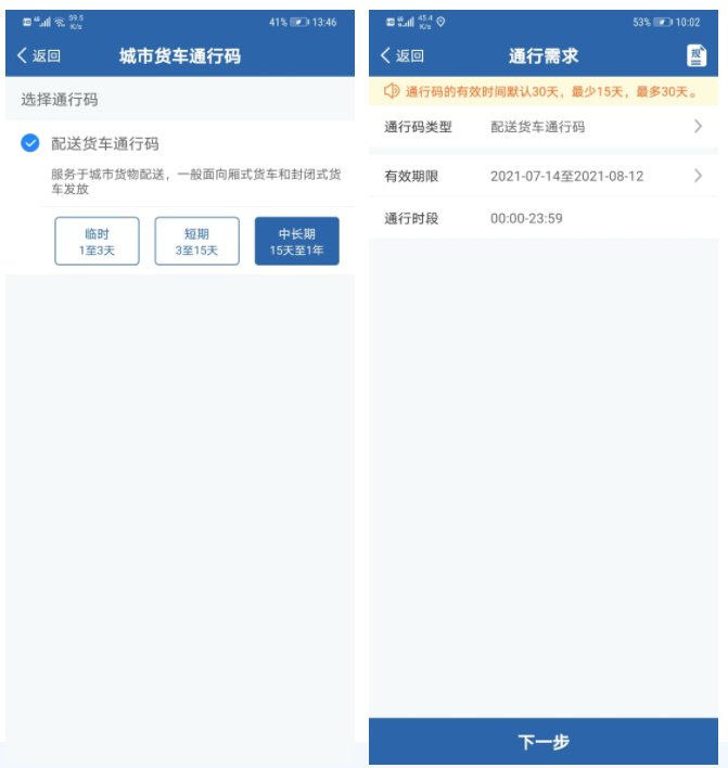 注意事项:机动车存在逾期未检验、注销、被盗抢、扣留、达到报废标准、事故逃逸等情形的,不允许申请城市货车电子通行码。