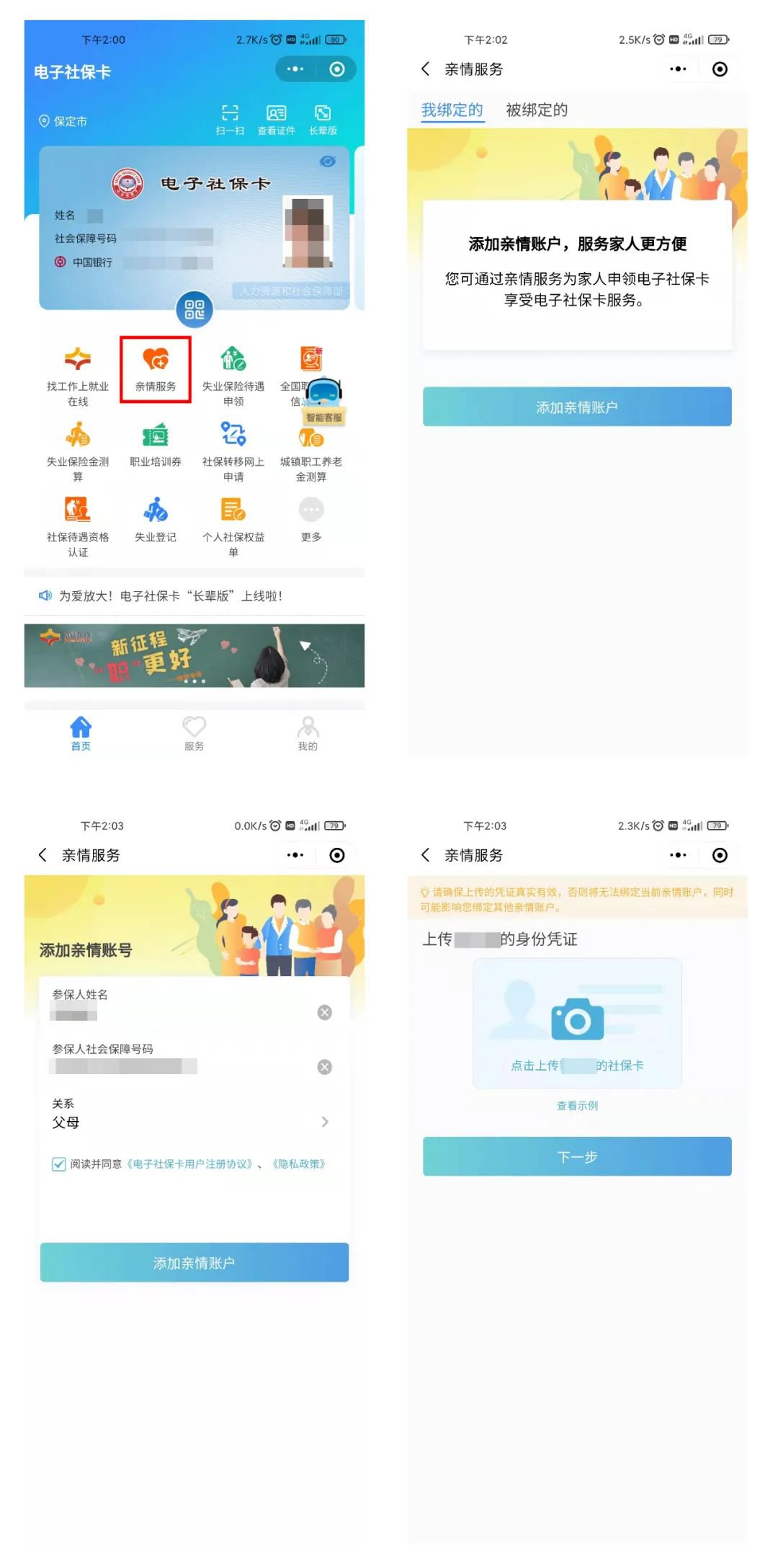 三、添加电子社保卡亲情服务