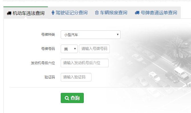 4、填写号牌种类、号牌号码、发动机号后六位及验证码,点击查询。