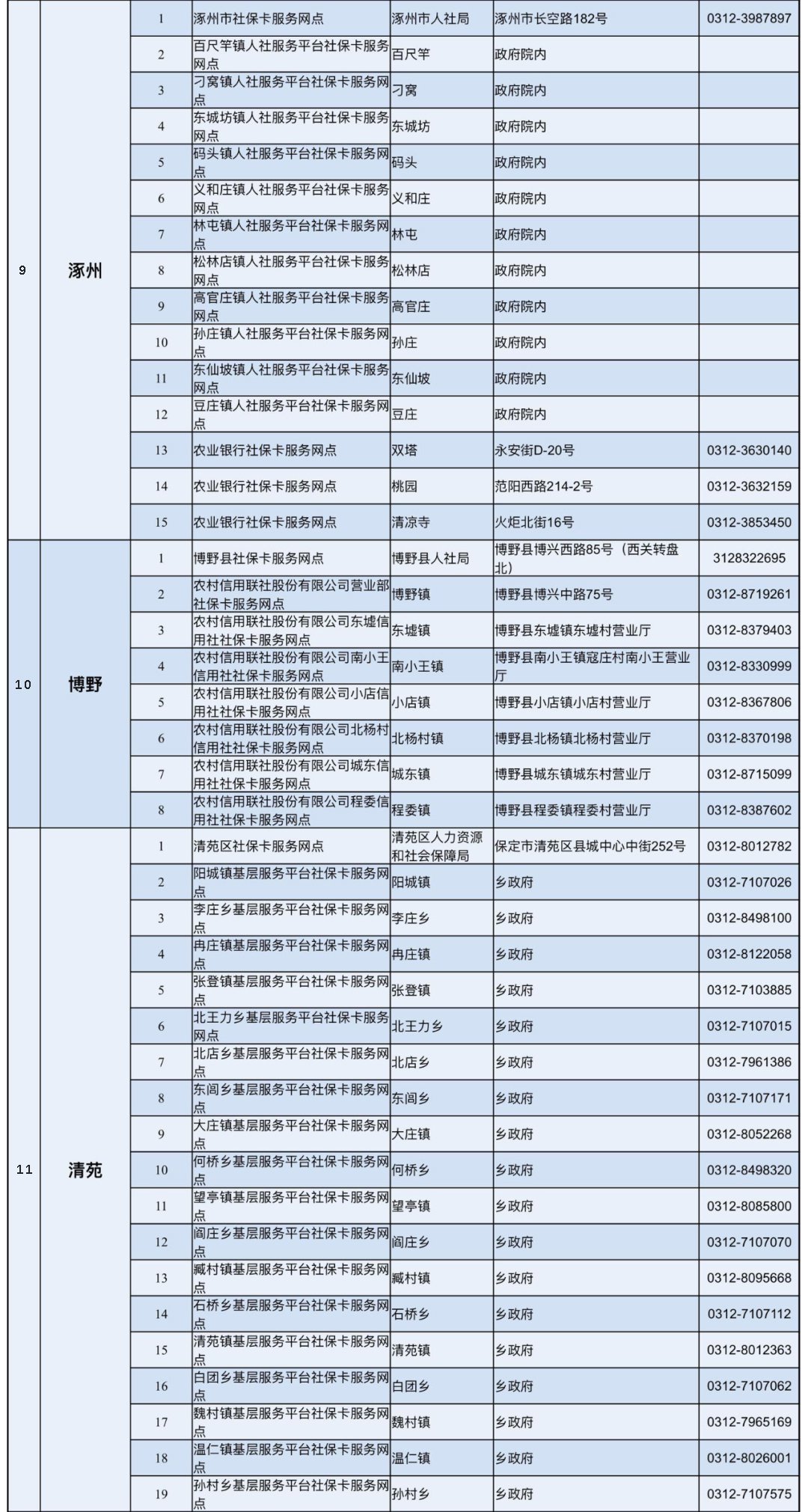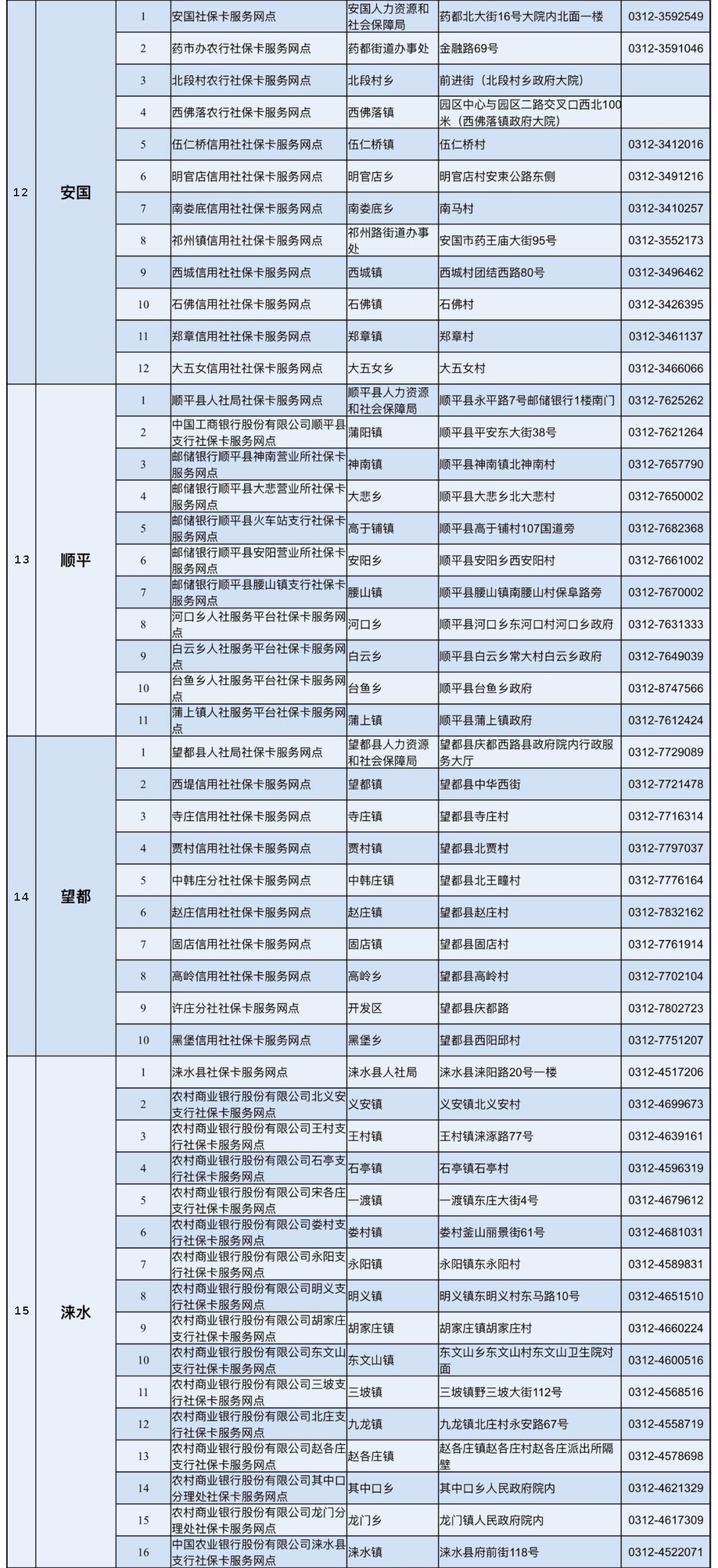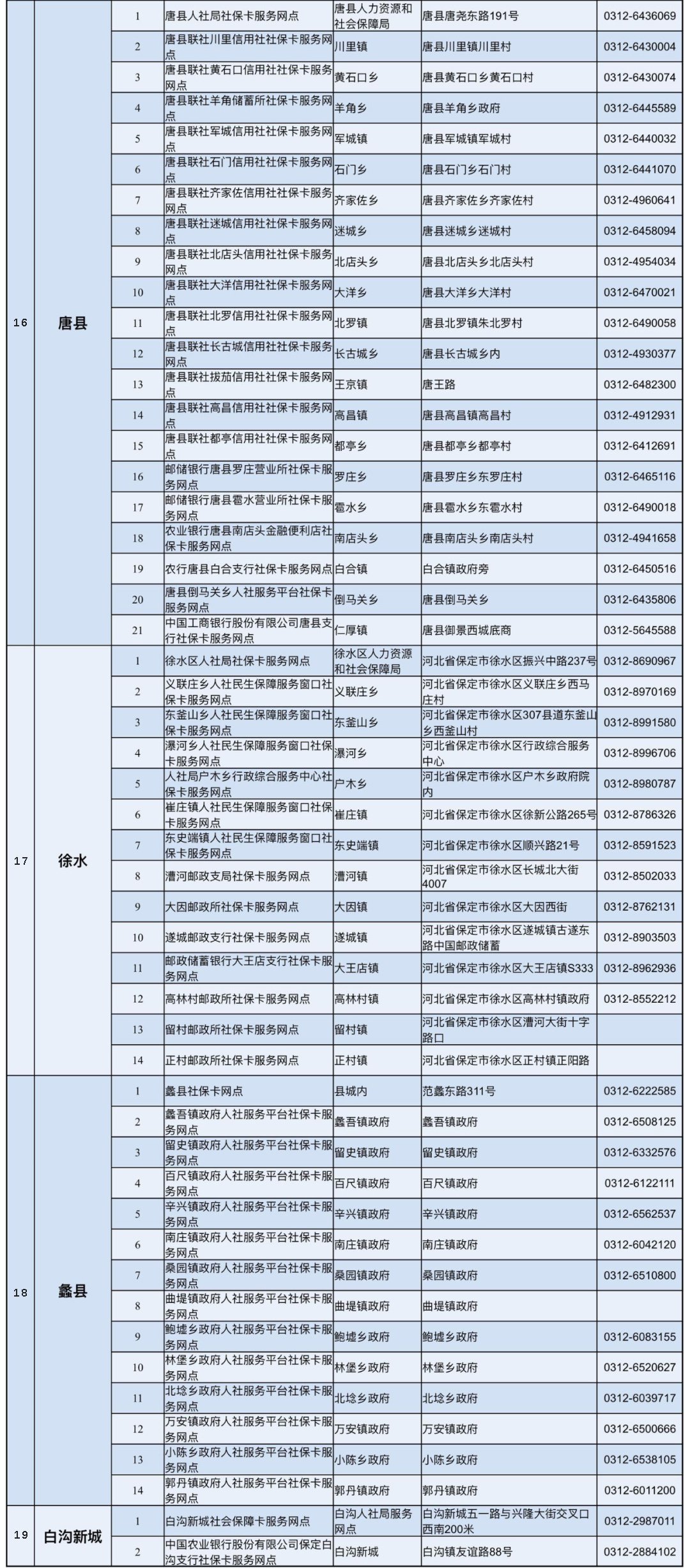 保定市各县(市、区)网点地址及电话: