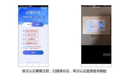 线上认证:待遇领取人员可通过下载安装“智能身份验证”手机APP注册后进行自助认证(手机中已下载的可直接点击“智能身份验证”图标进入,输入待遇享受人员身份证号码和密码后点击确定点击“人脸验证”按系统提示认证)