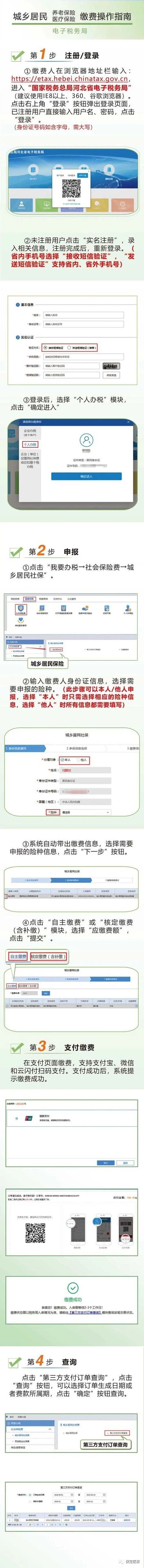 (1)微信缴费。缴费人关注“河北税务”微信公众号,点击:办税服务厅--社保缴纳--城乡居民社保费,输入身份证号码后,进行缴费。