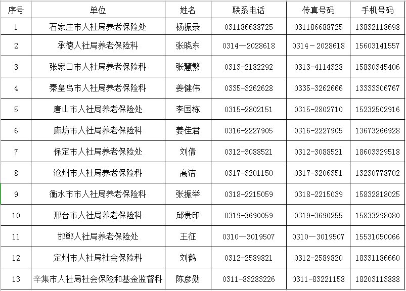 各市延缓缴纳社会保险费联系人员名单