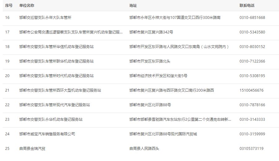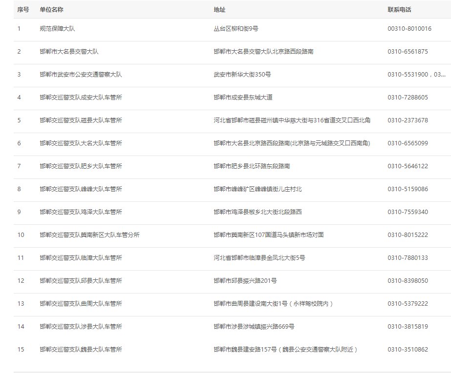 邯郸车管所及各分所地点(邯郸车管所电话号码)
