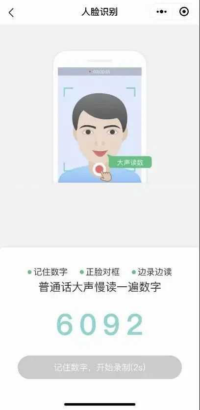读数认证:当屏幕出现4位数字,需要读数,请正面对屏幕,一边读数字一边录像进行认证。