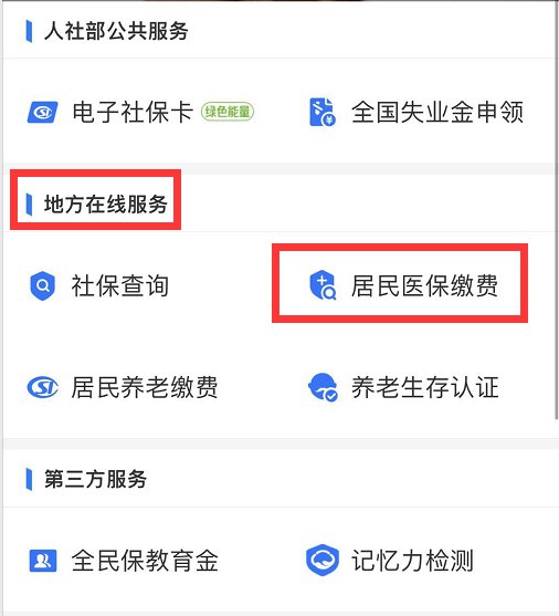 ③ 在【地方在线服务】专栏中选择【居民医保缴费】