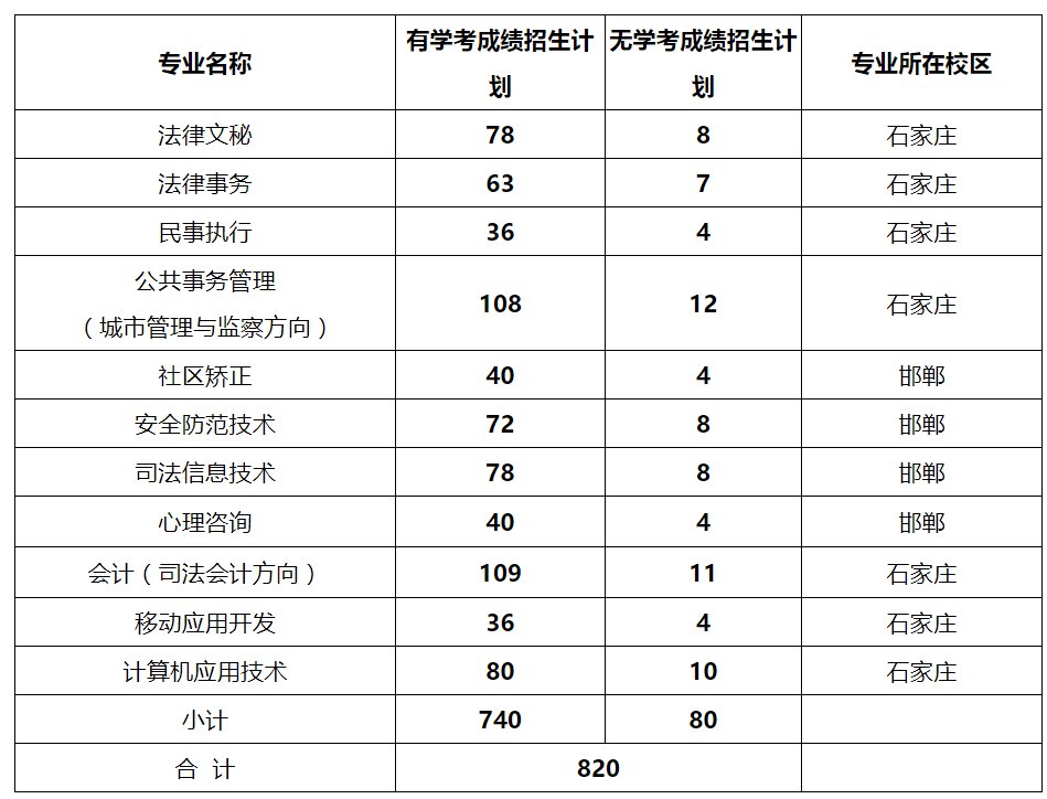 河北司法警官职业学院招生专业