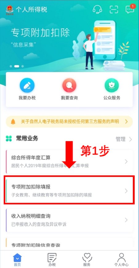 先确认之前申报的其他不需修改的专项附加扣除信息后,再点击APP首页-专项附加扣除填报进行新增。