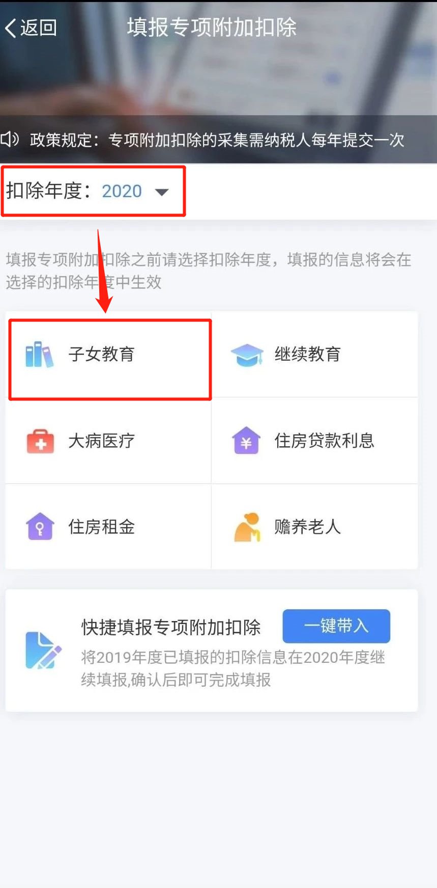 第二步:选择扣除年度“2021”,点击“子女教育”