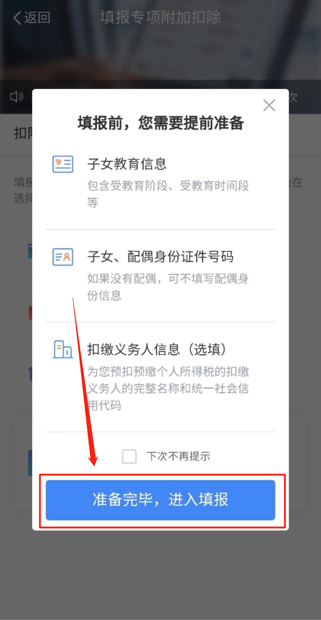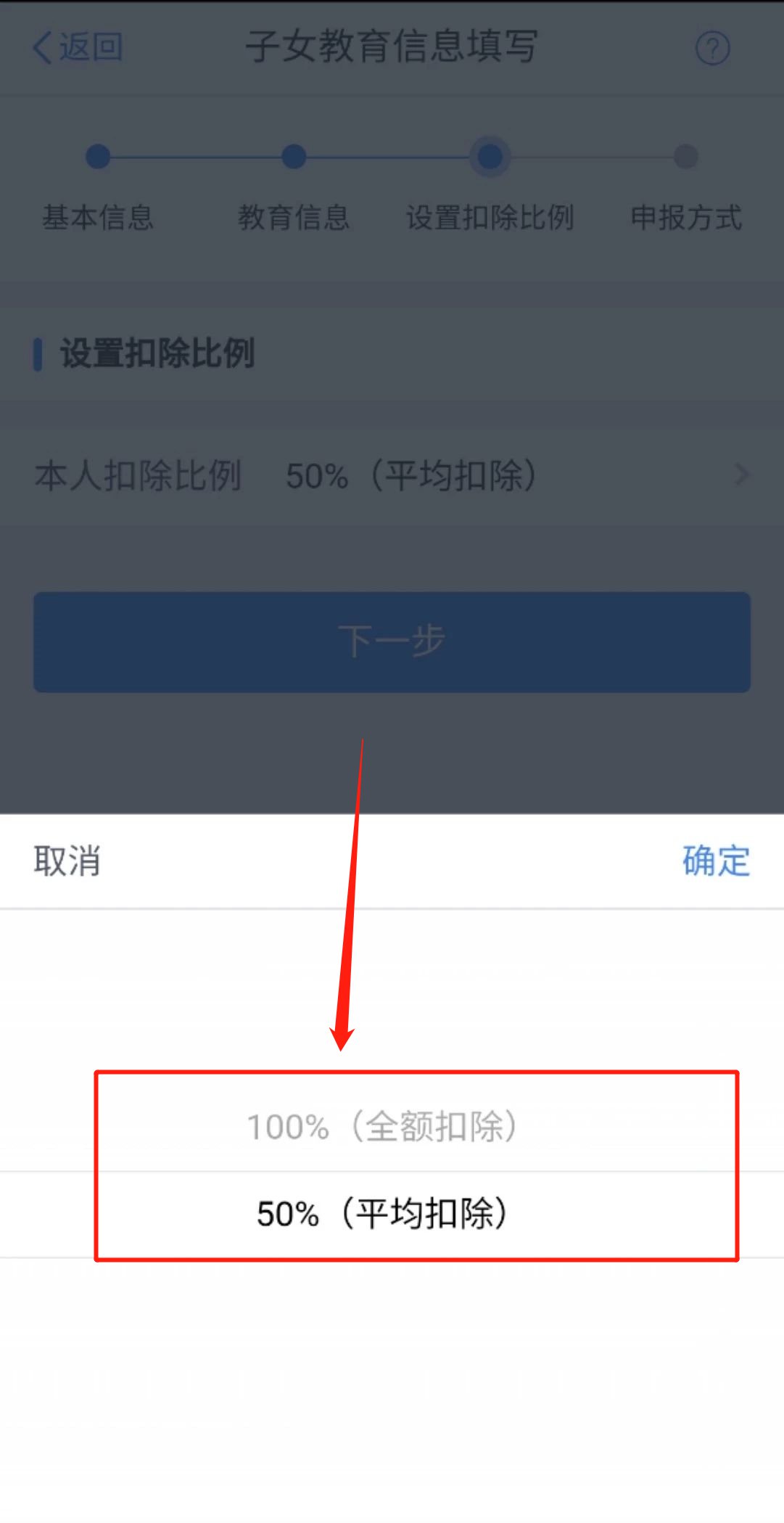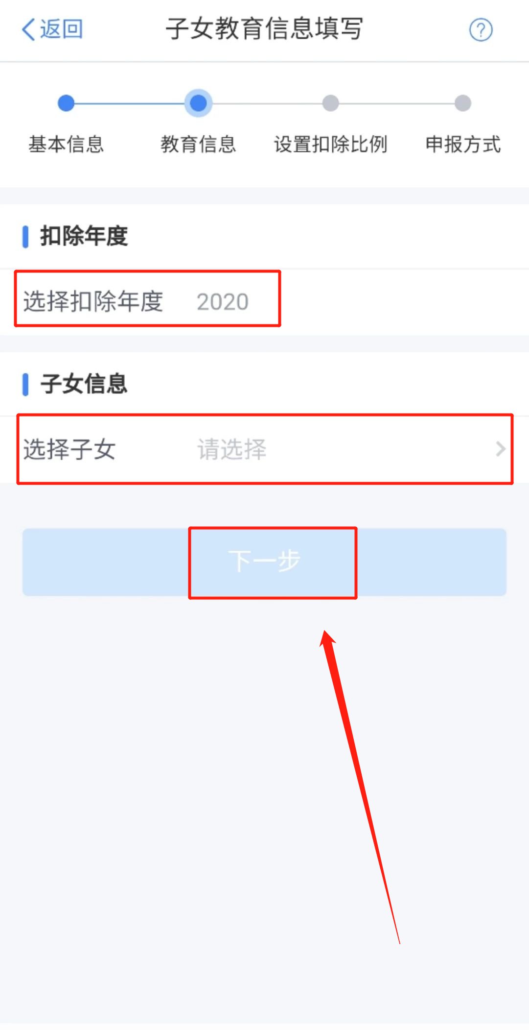 第五步:选择扣除年度,点击选择子女后,点击“下一步”进入子女信息填写