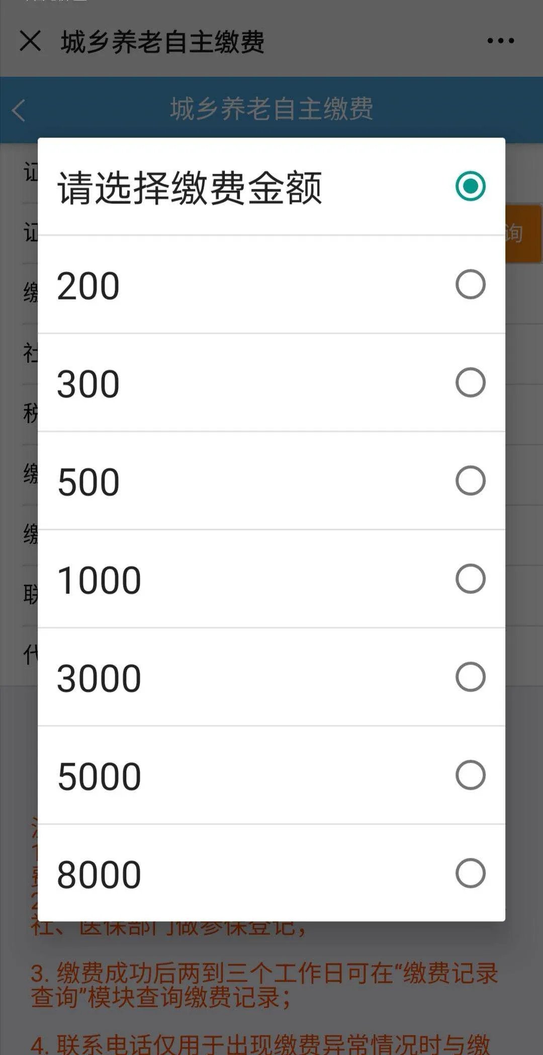 6.选择缴费金额
